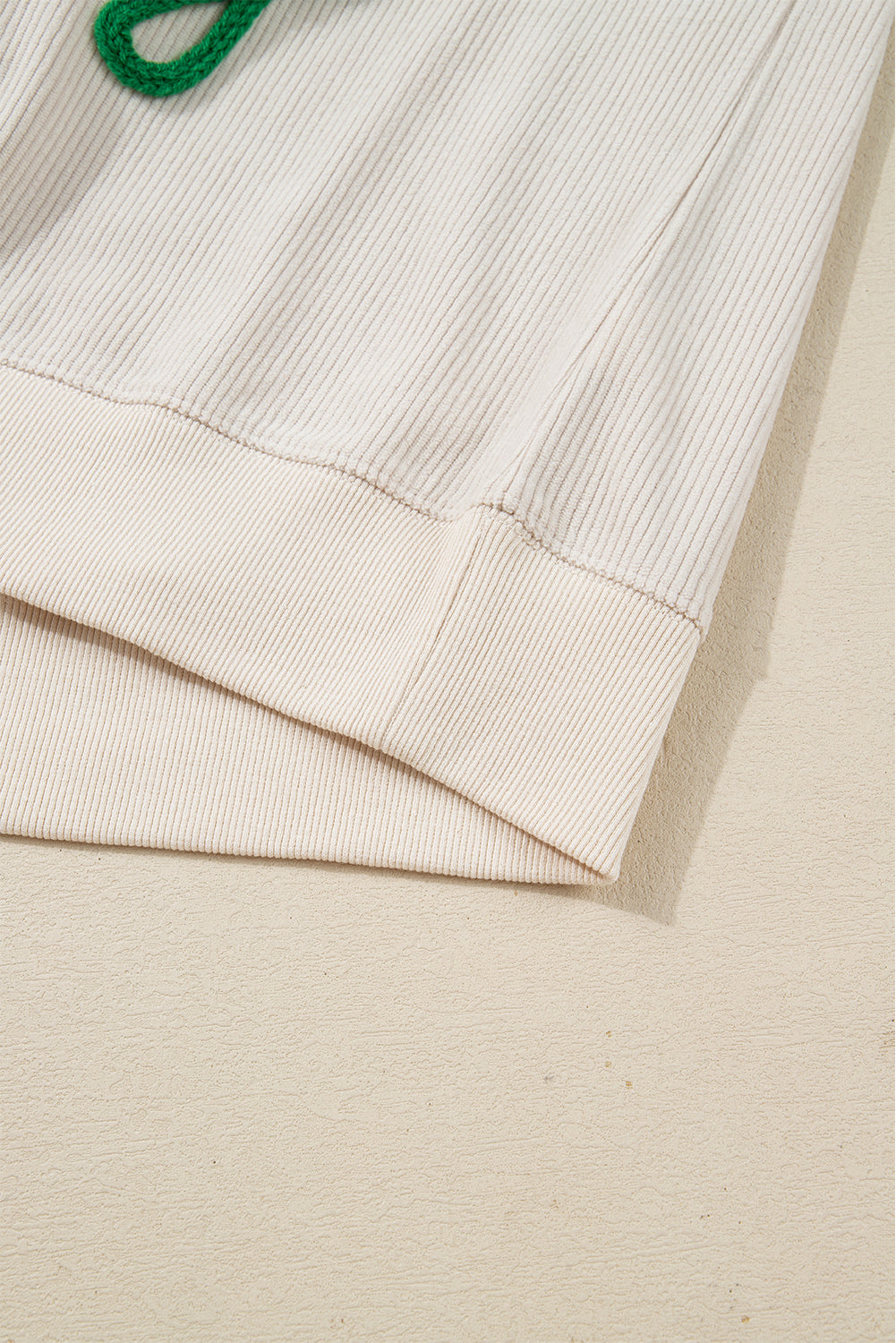 Beige merry everything Letter Graphic Ribbed Loose Sweatshirt