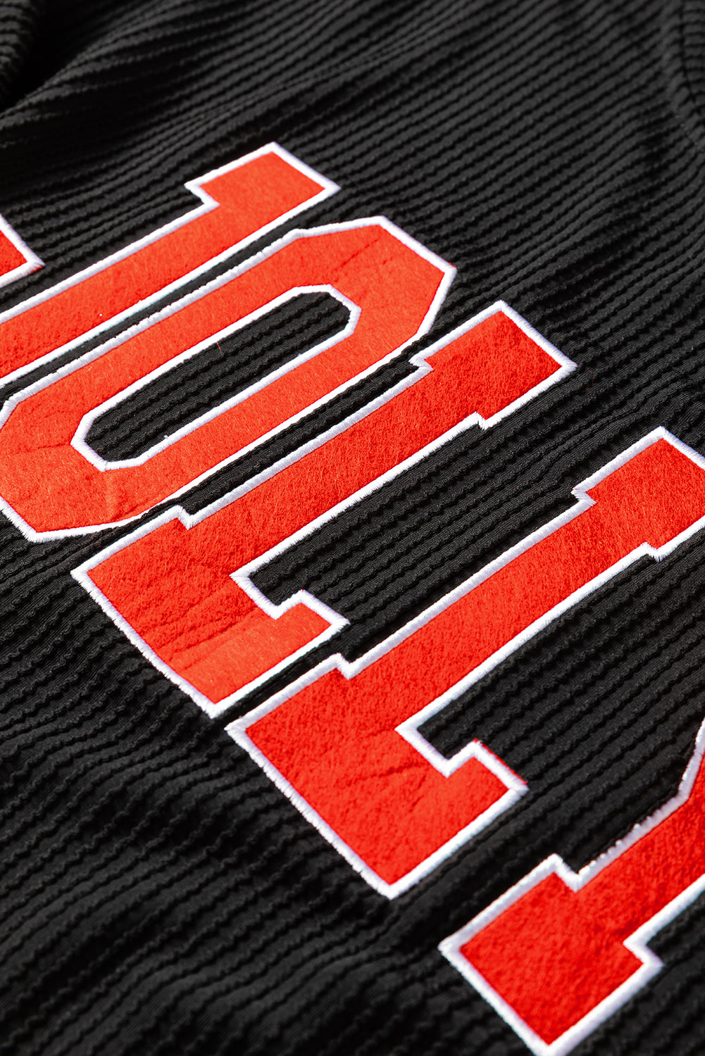 - The intricate JOLLY pattern adds a touch of sophistication to this black ensemble.