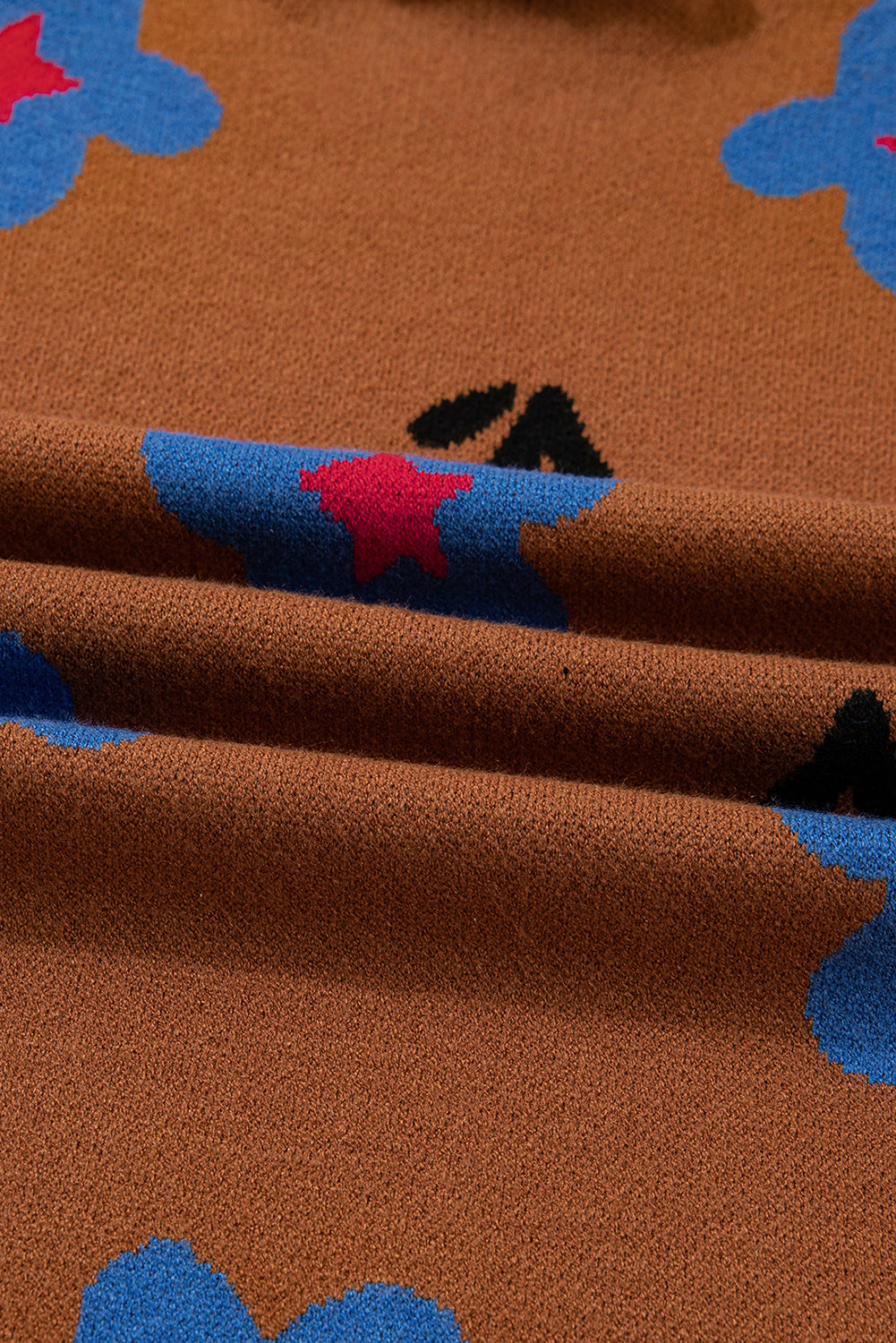 Chestnut Vintage Floral Pattern High Neck Sweater Vest