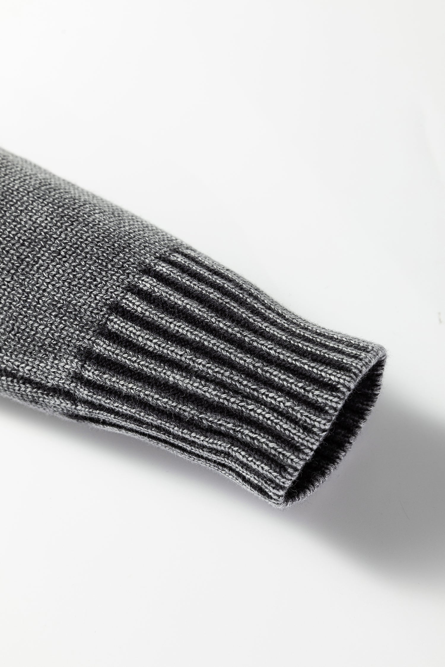 It has ribbed patchwork at the neckline, cuffs, and hemline.