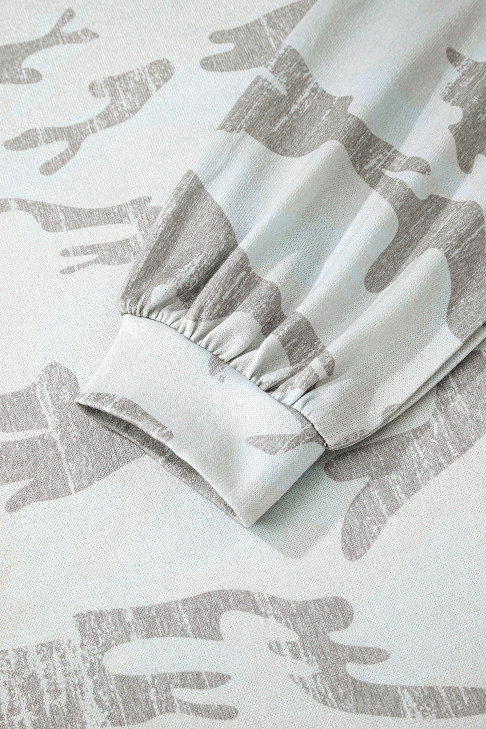 Green Camouflage Print Exposed Seam Drop Shoulder Sweatshirt