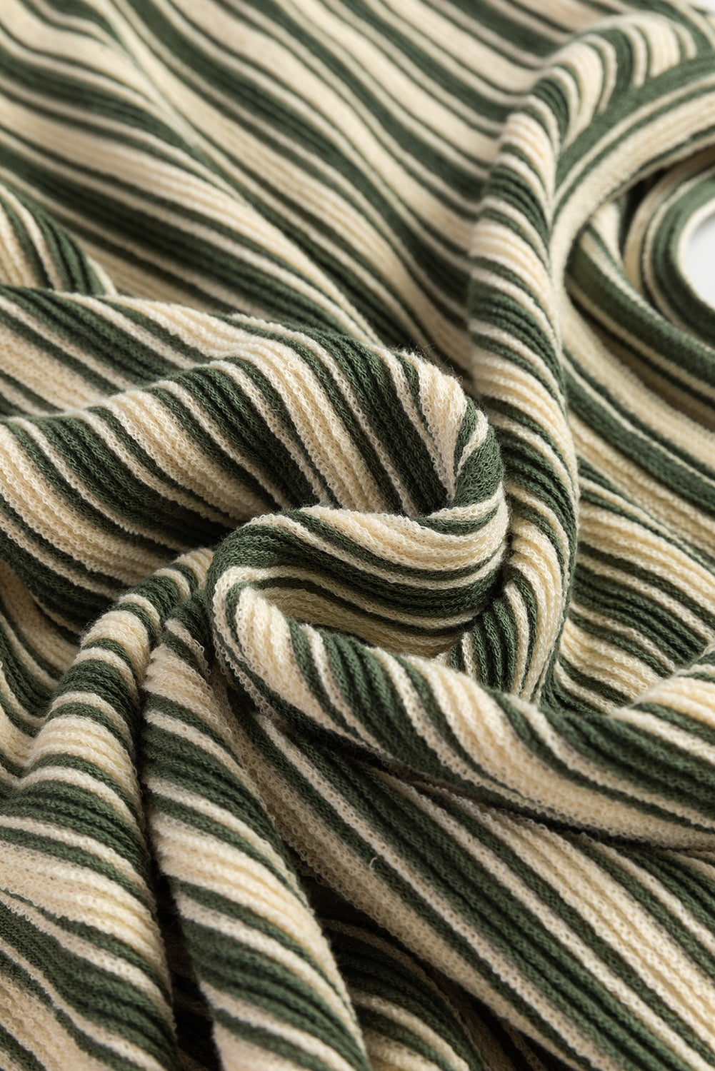 Green Stripe Textured Side Slit Crew Neck T Shirt