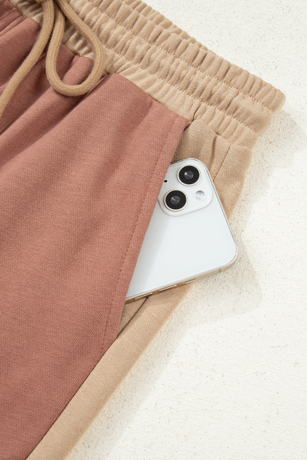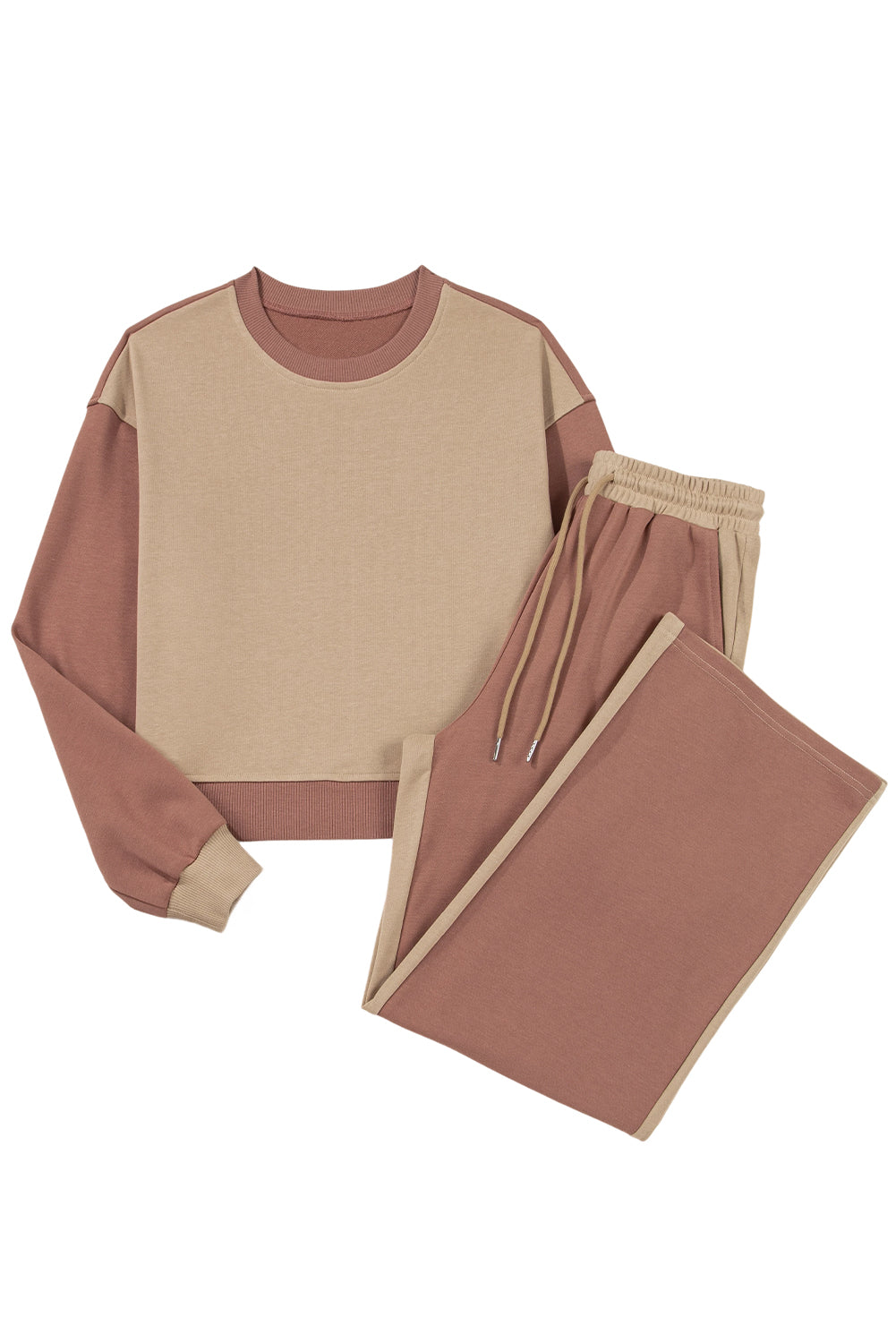 Khaki Color Block Long Sleeve Crop Top Drawstring Pant Set