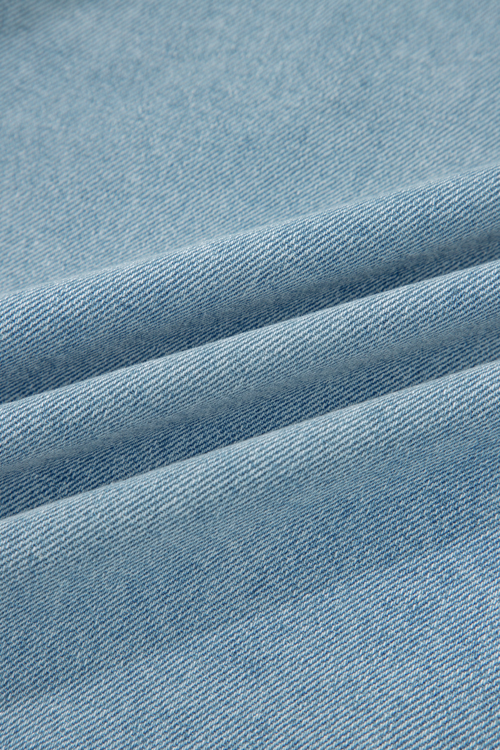 - Embrace effortless style with this denim jacket, featuring a classic collar and elastic hem for a comfortable and chic fit.