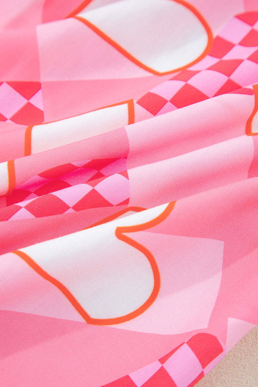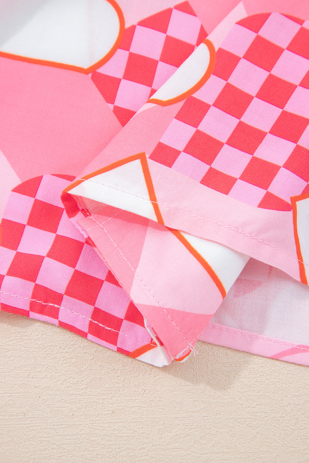 Pink Heart Print Shirt Style Silky Short Pajama Set