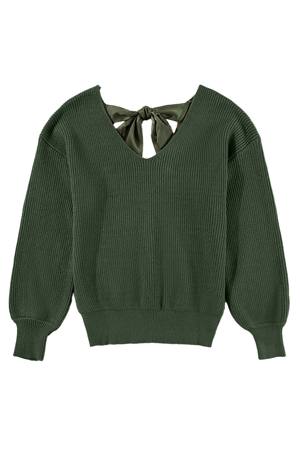 Racing Red Lantern Sleeve V Neck Knot Back Sweater