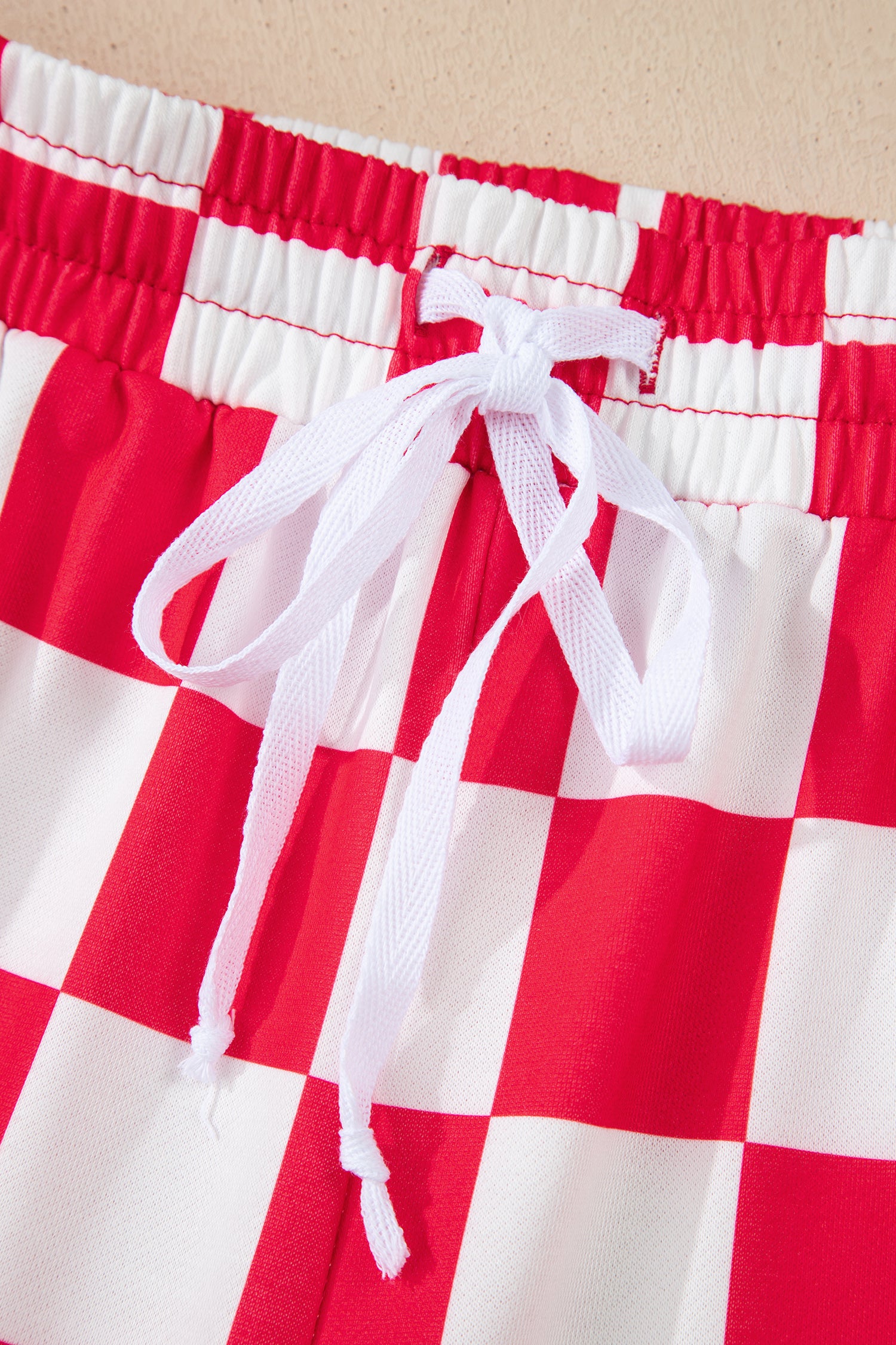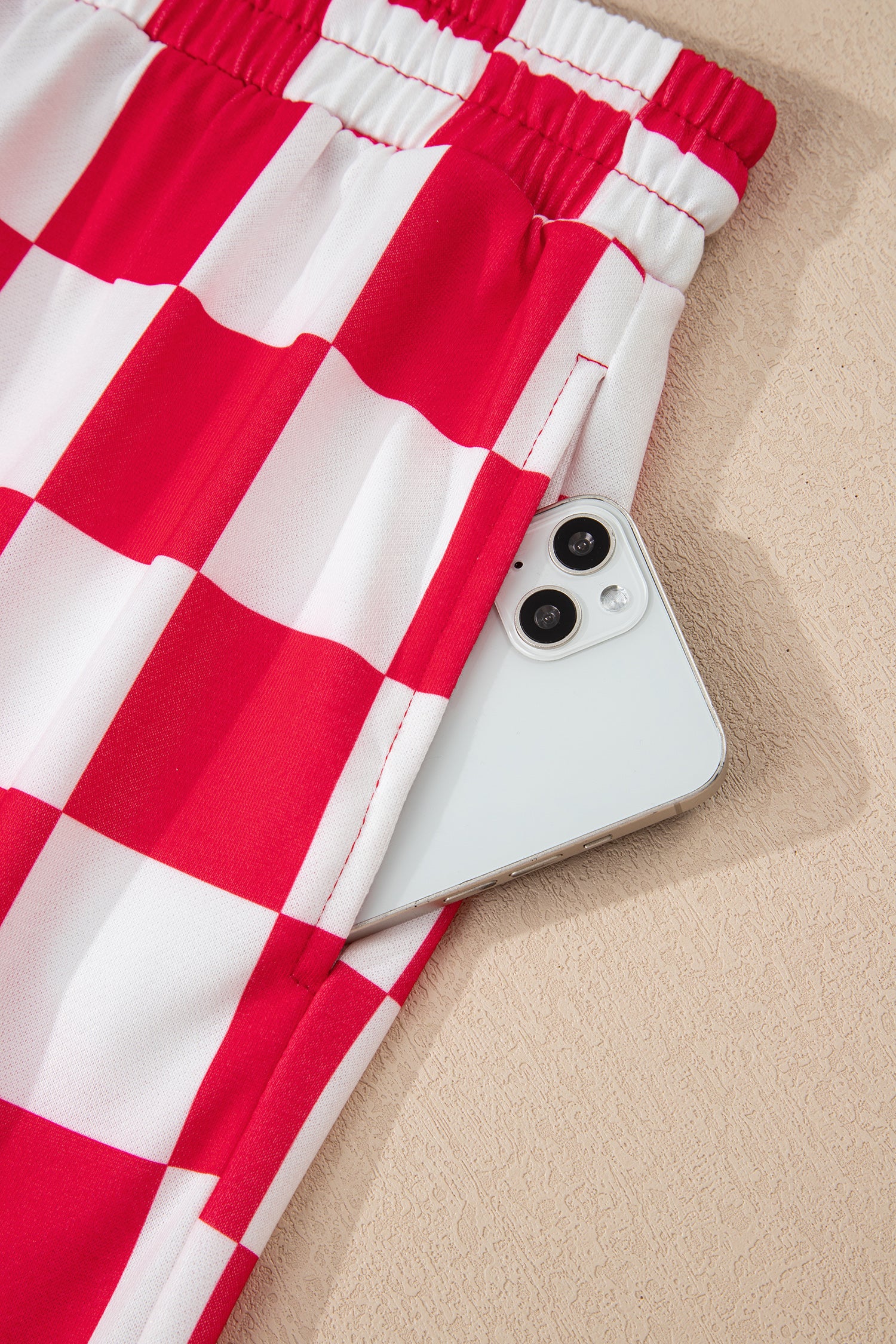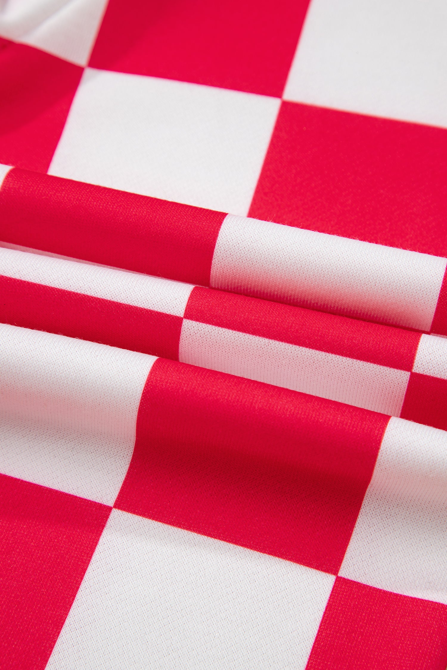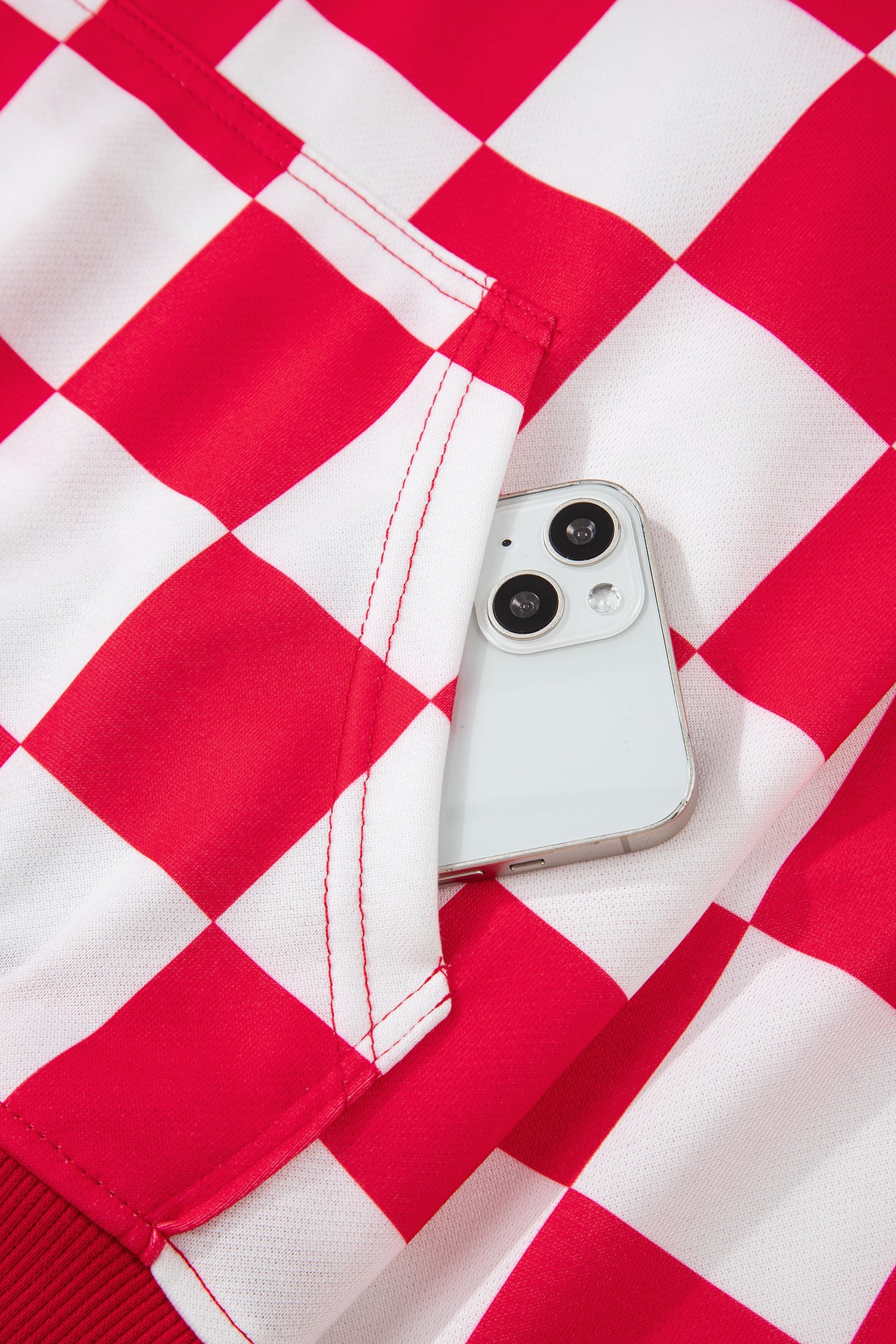 Red Checkered Print Half Zip Hoodie Loose Pant Set