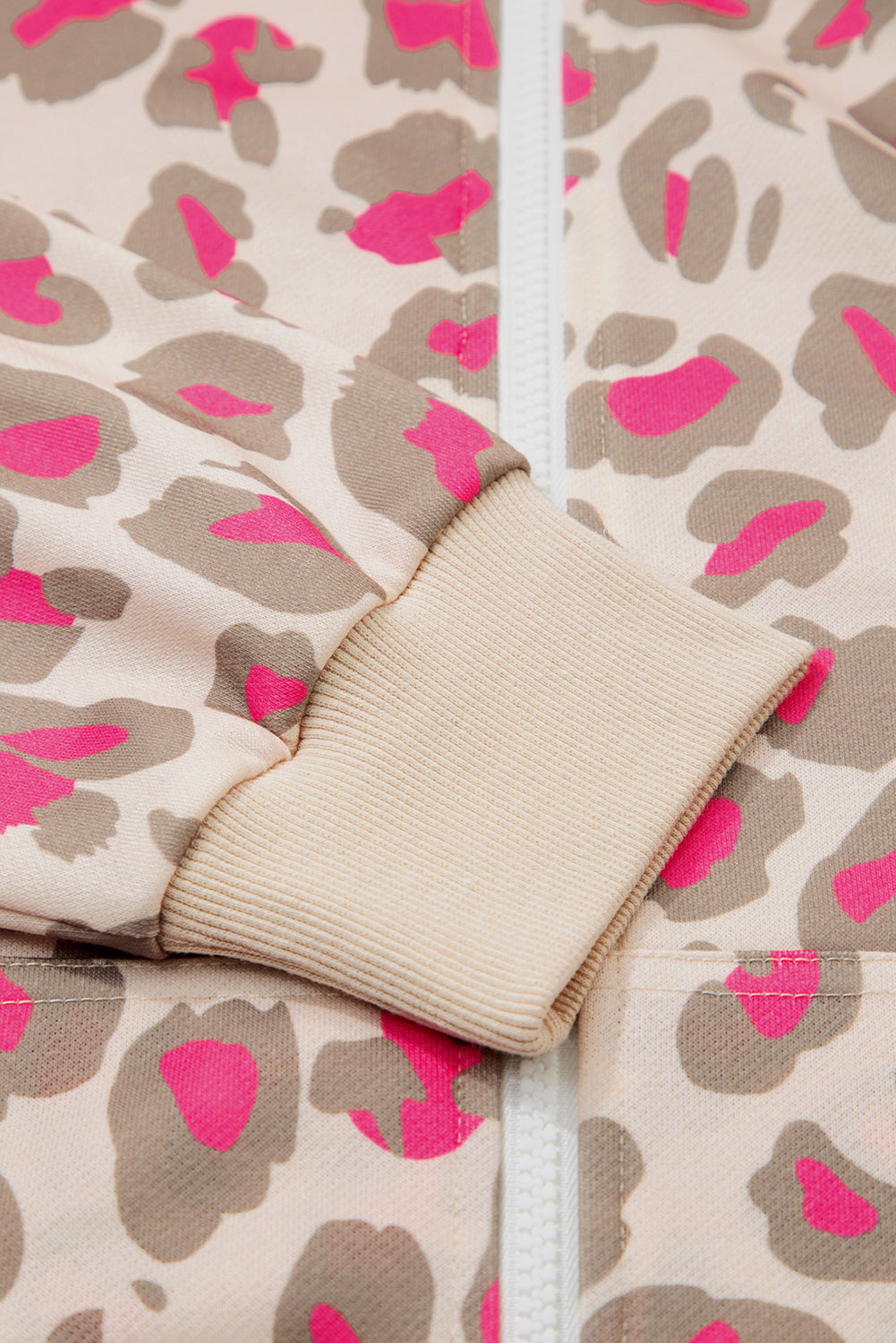 Rose Leopard Print Zip Up Hooded Sweatshirt