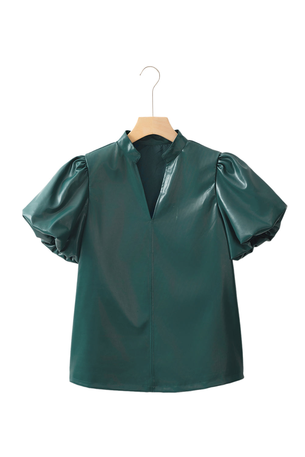 - The v-neck design adds a touch of femininity, while the puff sleeves bring a trendy twist to this classic silhouette.