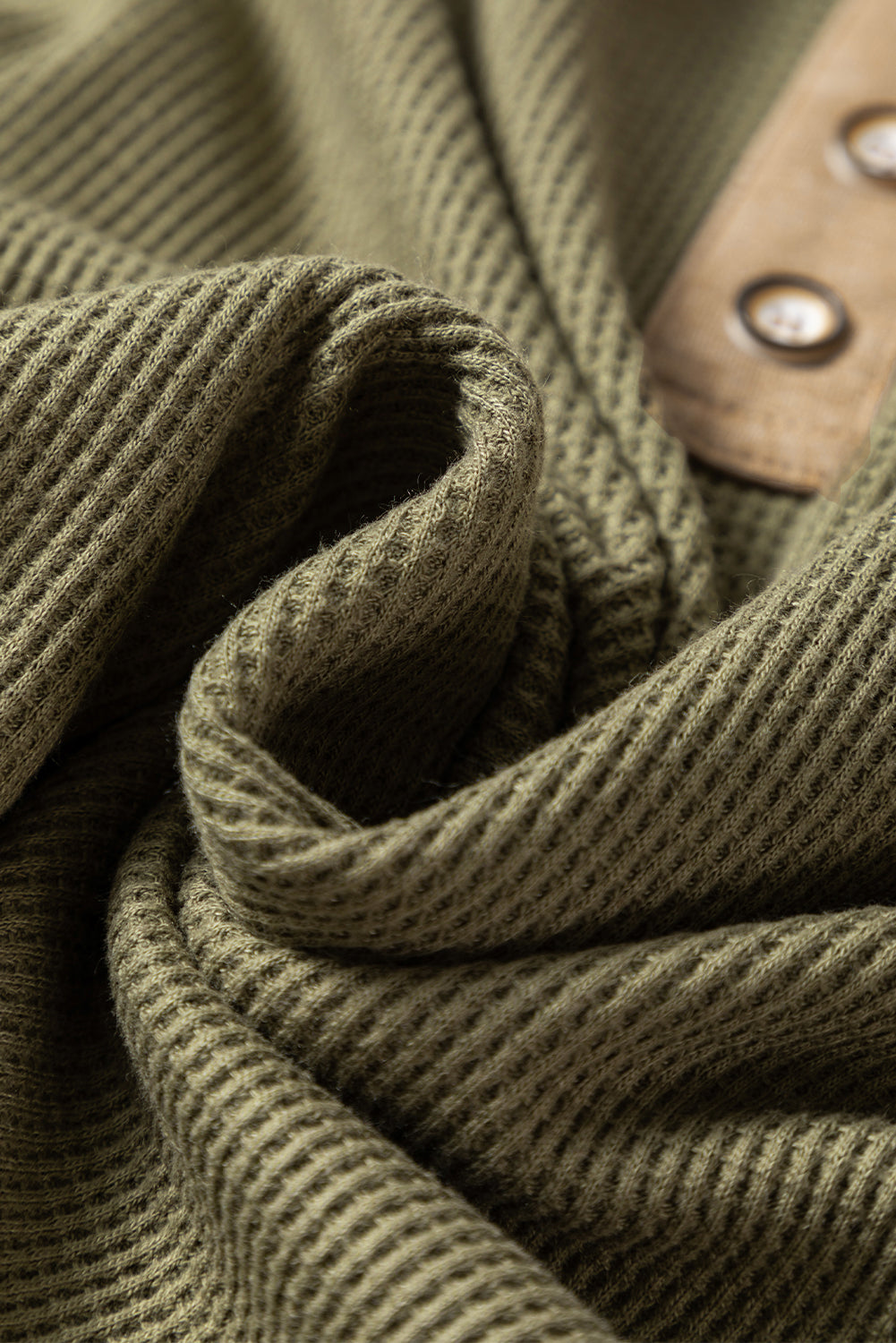Vineyard Green Waffle Textured Patchwork Tunic Henley Top